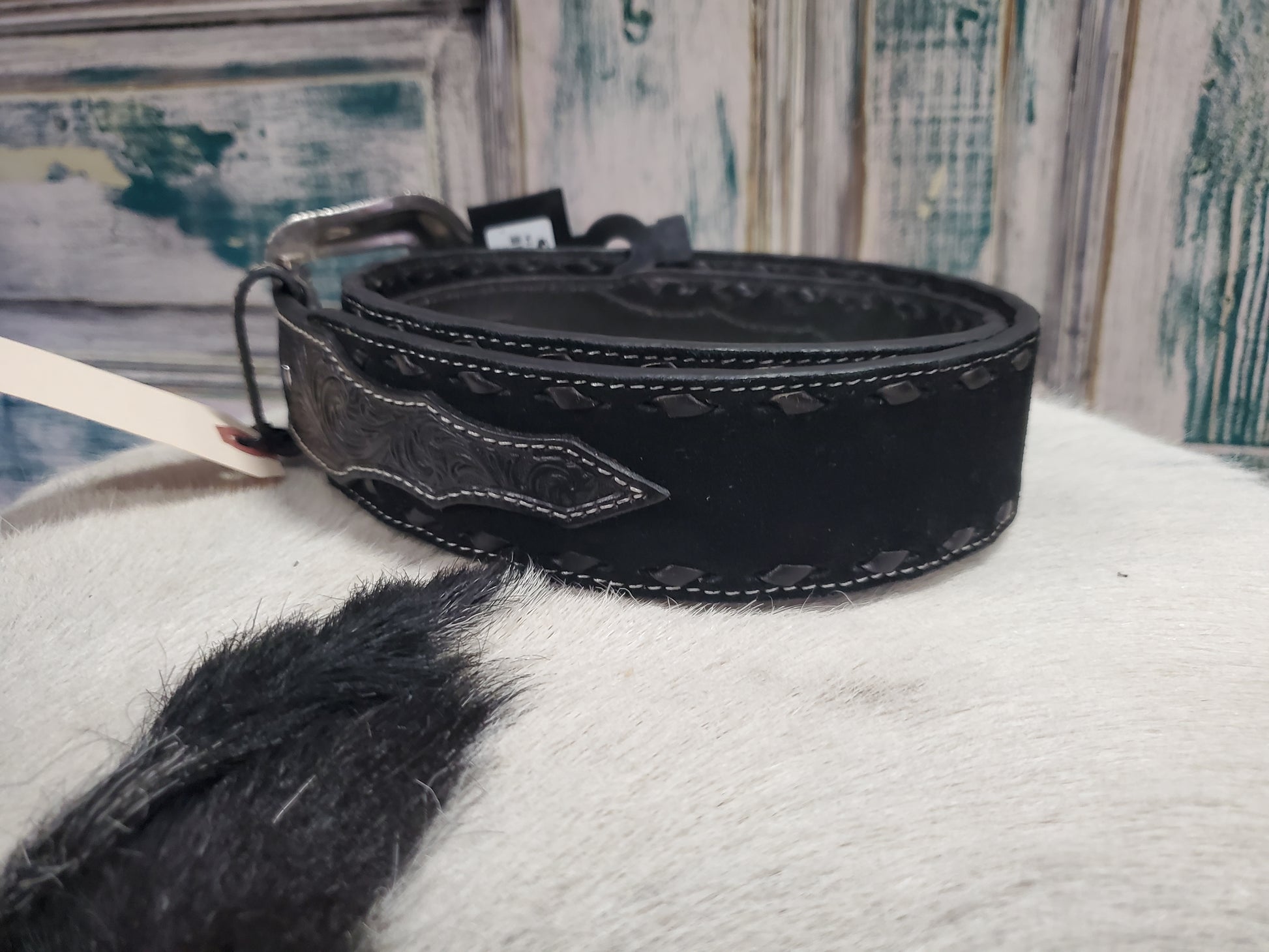 Black Roughout Buckstitch Belt