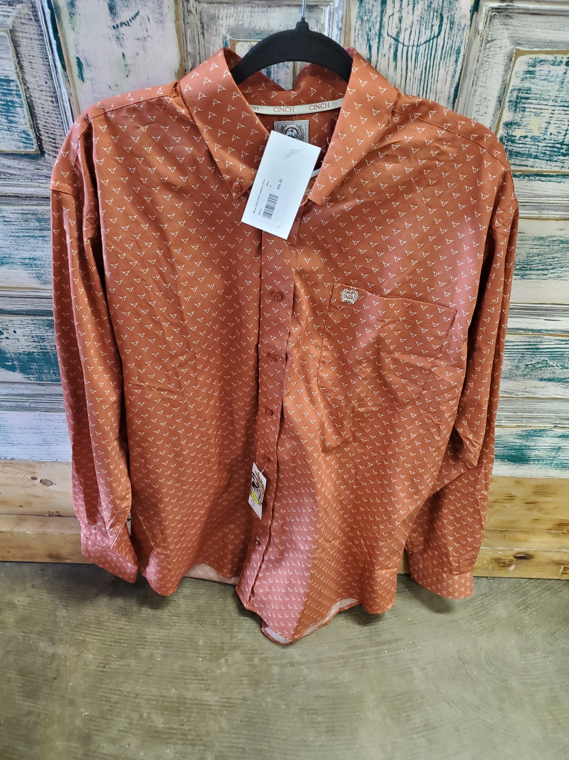 Mens Cinch Rust Longhorn Print