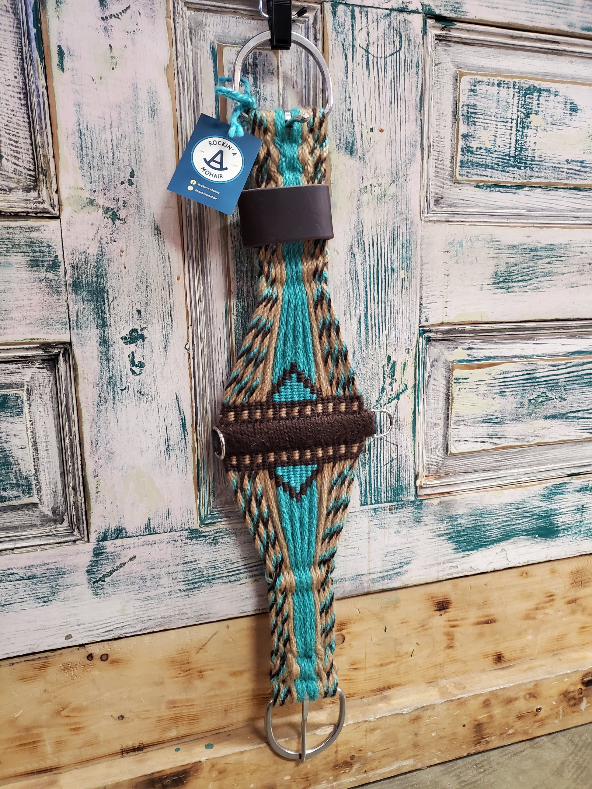 Tan/Aqua/Brown Mohair Roper Cinch